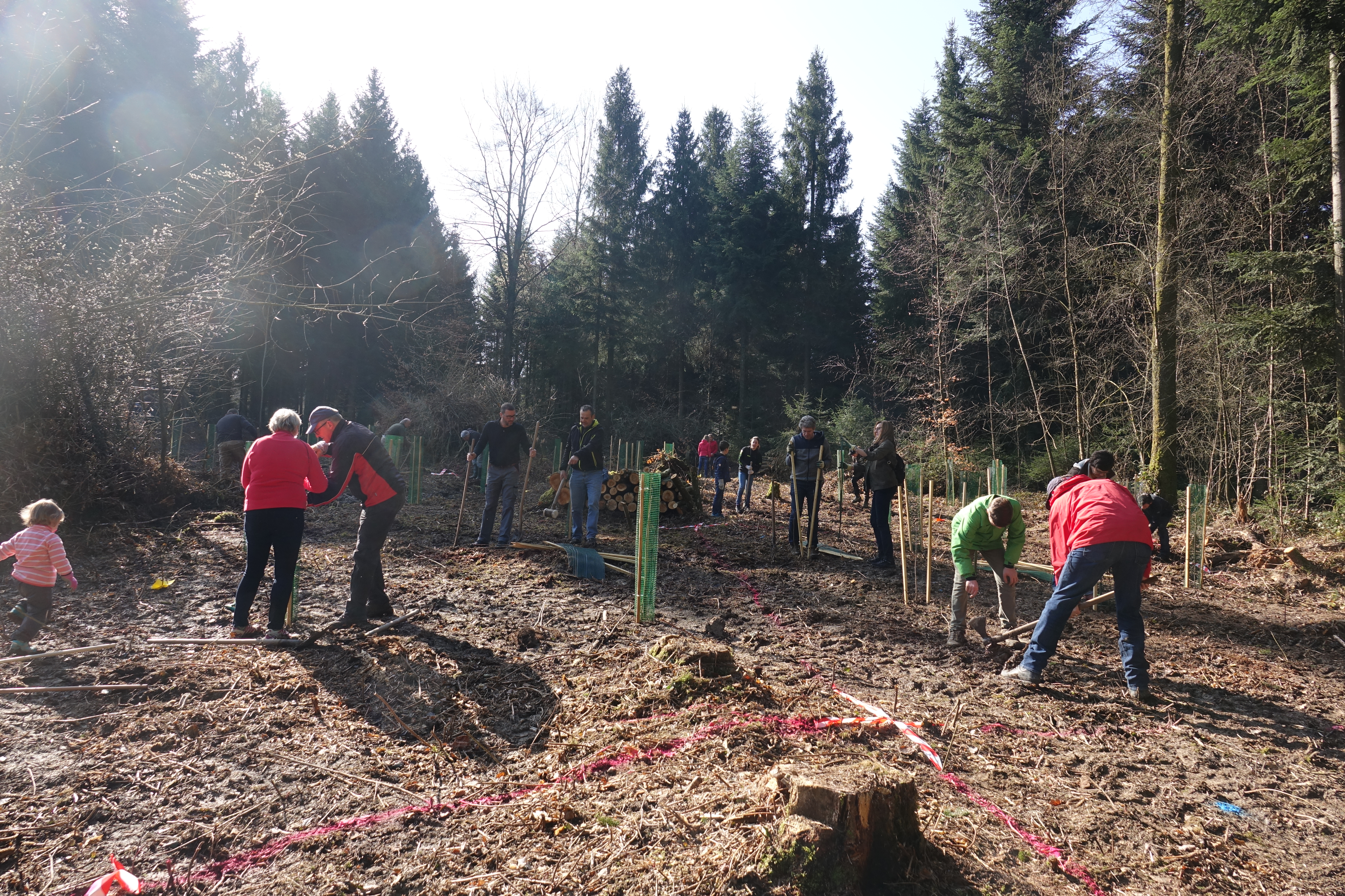 Kurz nach Kenntnisnahme, dass im Clubjahr 2017/0218 jede Rotarierin und jeder Rotarier einen Baum pflanzen sollte, erfuhr der amtierende Clubpräsident auf der Anreise zu einem wichtigen Fussballspiel, dass Rot. Martin und Irene Birrer in der Gemeinde Emmen, Schluchenwald, über Waldeigentum verfügen. Spontan ergab sich daraus die Anfrage, ob im Lothar geschädigten Bereich eine Aufforstaktion realisierbar wäre. Am Samstag, 7. April 2018, haben nach umfangreichen Planungen und Vorbereitungsarbeiten 16 Rotarierinnen und Rotarier, begleitet von Partner und Partnerinnen, sowie unter tatkräftiger Mithilfe von 11 Kindern, 300 Bäume neu gepflanzt. Das 1999 vom Sturmwind Lothar erheblich geschädigte Waldstücke eignete sich gemäss den einleitenden Ausführungen von Thomas Stirnimann, externer Projektbegleiter, ausgezeichnet für eine nachhaltige Aufforstung, bei der ökologische und auch ökonomische Ziele erfüllt werden können. Nebst der Aufforstung sind im Rahmen der umfangreichen Vorbereitungsarbeiten auch Nischen für die Entwicklung der Tierwelt geschaffen und zwei separate Teiche, zum einen für die Bewässerung und zum anderen auch als natürlicher Lebensraum für Frösche erstellt. Damit die ökologischen und ökonomischen Vorgaben erfüllt werden können, sind verschiedene Baumarten (Spitzahorn, Holzapfelbaum, wilder Kirschbaum, Stieleiche, Winterlinde, Schwarz- und Roterlen, Bergulme und Weisstannen) eingepflanzt worden. Damit die im Wald vorhandenen Rehe die jungen Pflanzen abfressen können, sind alle neuen Sitzlinge mit einem Wildschutz versehen worden. Beim Besuch der Firma Bucherer AG, im Oktober 2017, hat der Gastgeber den Apéro offeriert und mit den Beiträgen der Teilnehmenden an diesem Abendanlass konnte die Pflanzaktion, inklusive der Verpflegung der freiwilligen Helfer, finanziert werden.